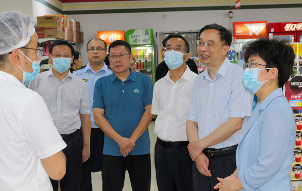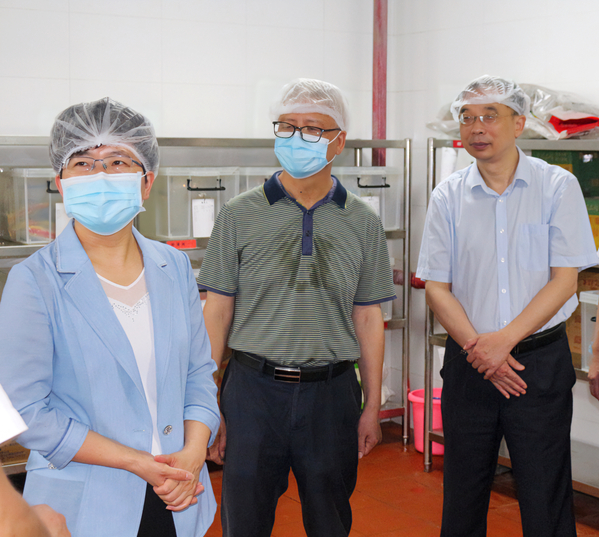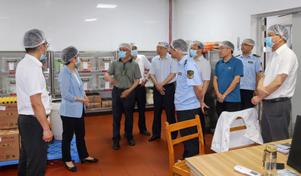 本网讯(通讯员涂亦乐)为进一步增强食品安全意识,筑牢食品安全防线,全面推进食品安全“两个责任”工作落实见效。5月30日上午,市委常委、市委宣传部部长周庆荣率市市场监管局、开发区·铁山区相关部门一行深入乐鱼网站_乐鱼(中国)食堂开展食品安全检查工作。院长李开灿、常务副院长杨学斌、党委书记杨邓红、副院长张志华及相关部门负责人陪同检查。