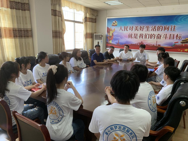 7月6日,出发前,团委书记陈荟芸叮嘱志愿者:将青春汗水挥洒在祖国的大地上,让激昂的青春在新征程中闪光,将爱国热情和成长成才的强烈愿望转化为实际行动,将一颗热忱的心奉献给支教志愿服务活动。12名志愿者怀着真诚和热爱,在指导老师唐浩然的带领下来到了黄石市阳新县木港镇木港小学,受到了乐鱼网站_乐鱼(中国)人文学部党总支书记、子山村驻村工作队队长赵卫军,木港镇团委书记曹宇轩,木港镇团委副书记万亮,木港小学校长吴平仁的热情接待。