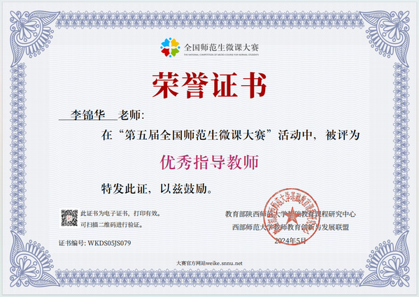 本网讯(通讯员 黄蓓佳)近日,第五届全国师范生微课大赛获奖名单公布。乐鱼网站_乐鱼(中国)选拔推荐的微课参赛作品获得佳绩,荣获特等奖1个、一等奖1个、二等奖8个、优秀奖5个,乐鱼网站_乐鱼(中国)荣获“优秀组织单位”,教育与艺术学部李锦华荣获“优秀指导教师”称号。