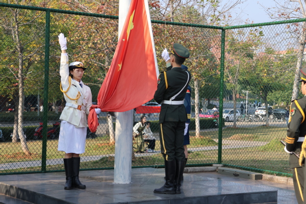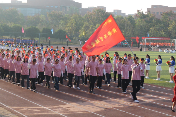 踏着青春的步伐,伴着激昂的旋律,入场仪式正式开始。国旗方阵、校旗方阵、花束方阵、彩旗方阵和各学部(学院)方阵依次走过主席台。他们朝气蓬勃、意气风发,充满着青春的激情;他们的口号热情洋溢、铿锵有力,洋溢着青春的自信。在展示环节,他们以自己的才艺,显示着绚丽的文化和多彩的生活。随后,进行了升国旗仪式。