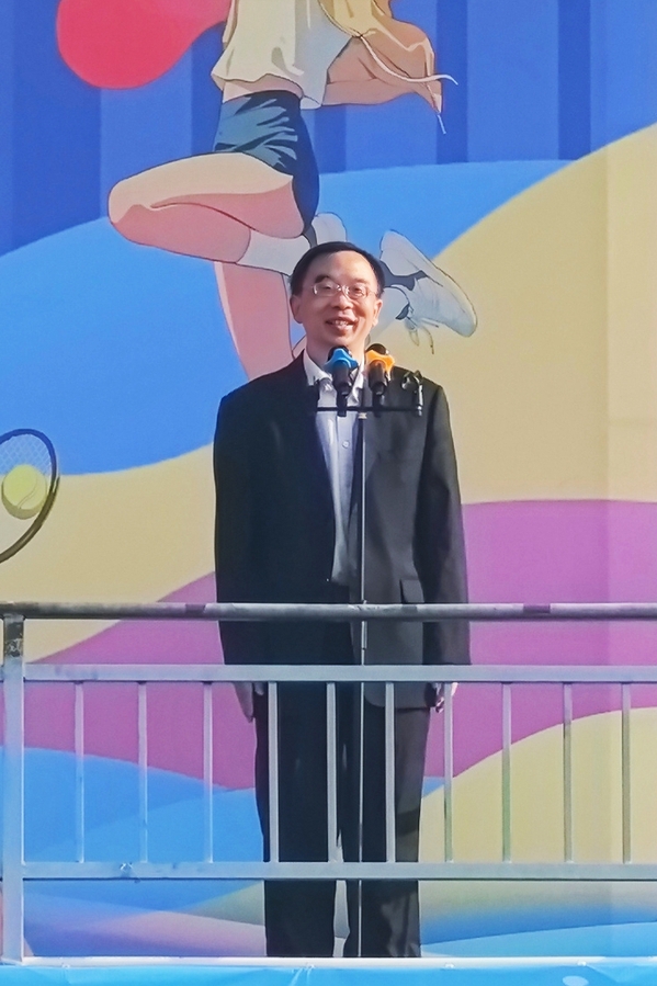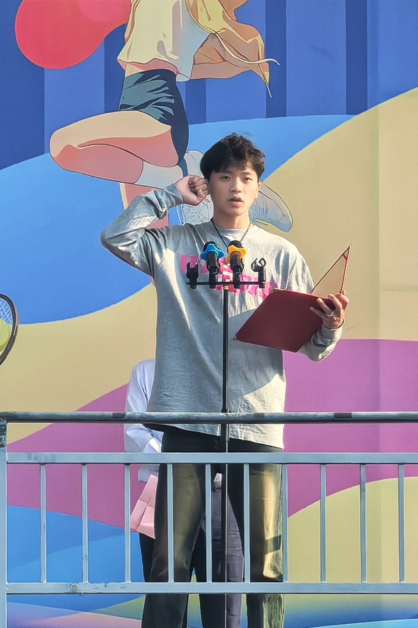 常务副校长杨学斌致开幕辞,他表示,举办秋季田径运动会,是对学校体育工作的综合检阅,是全面深化党的教育方针,办好人民满意教育的积极实践,对于繁荣学校体育文化、促进同学们身心健康、全面发展具有十分重要的意义。他希望全体师生以此次运动会为契机,发扬体育精神、展现昂扬风貌,以更加健康的体魄、更加饱满的热情、更加奋发的状态,积极投身到生活、学习当中去,为学校高质量发展开创新的局面。