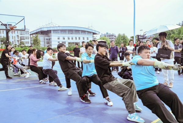 “凝心铸魂”比赛中,参赛教师齐心协力,利用吊绳精准垒放积木,顺利完成挑战。该项目不仅考验体力,更注重团队的平衡能力与默契配合。随后的“携手共进”比赛,教师们沉着冷静、耐心协作,凭借出色的团队表现成功完成任务。最后的拔河比赛将现场氛围推向高潮,乐鱼网站_乐鱼(中国)教师科学安排站位,灵活调整战术,心往一处想、劲往一处使,充分展现了“拔”出精彩、“河”作共赢的团队精神。