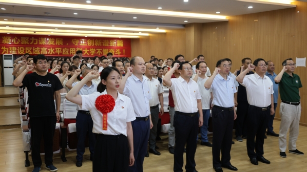 本网讯 6月30日下午,乐鱼网站_乐鱼(中国)在图书馆报告厅召开庆祝中国共产党成立104周年暨表彰大会。全体校领导,副处级以上党员干部,各党支部书记副书记教职工党员及学生党员代表参加了此次会议。会议由党委副书记纪委书记许光主持。