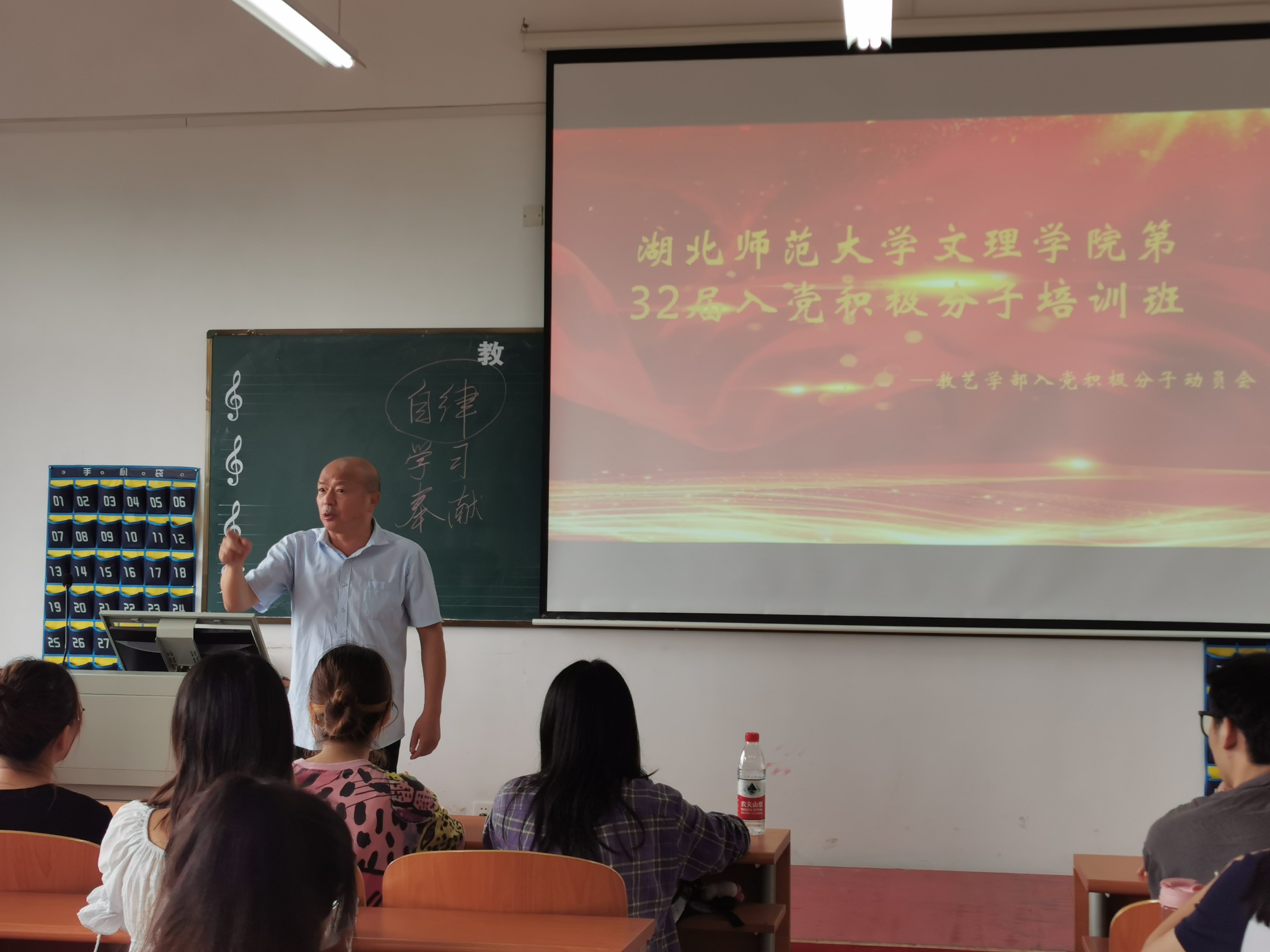 2023年9月26日中午12:00,教育与艺术学部学生党支部在实验楼1-403召开了第32期入党积极分子动员大会。动员会由党支部书记尹誉霖老师主持,党总支书记李先华以及78名新入党积极分子参加动员会。