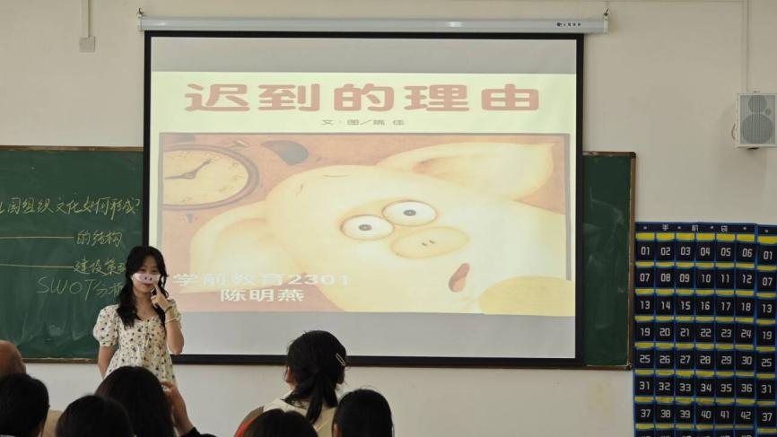 学前教育2302班的宋灵琳和学前教育2301班的陈明燕先后讲述了儿童故事《哭是解决不了问题的哦》和《迟到的理由》,内容丰富,通俗易懂,语言生动形象,带动了课堂的氛围。最后,总支书记和学部主任针对展示内容、语音语调和课堂呈现等方面为同学们给出了指导性意见和建议。