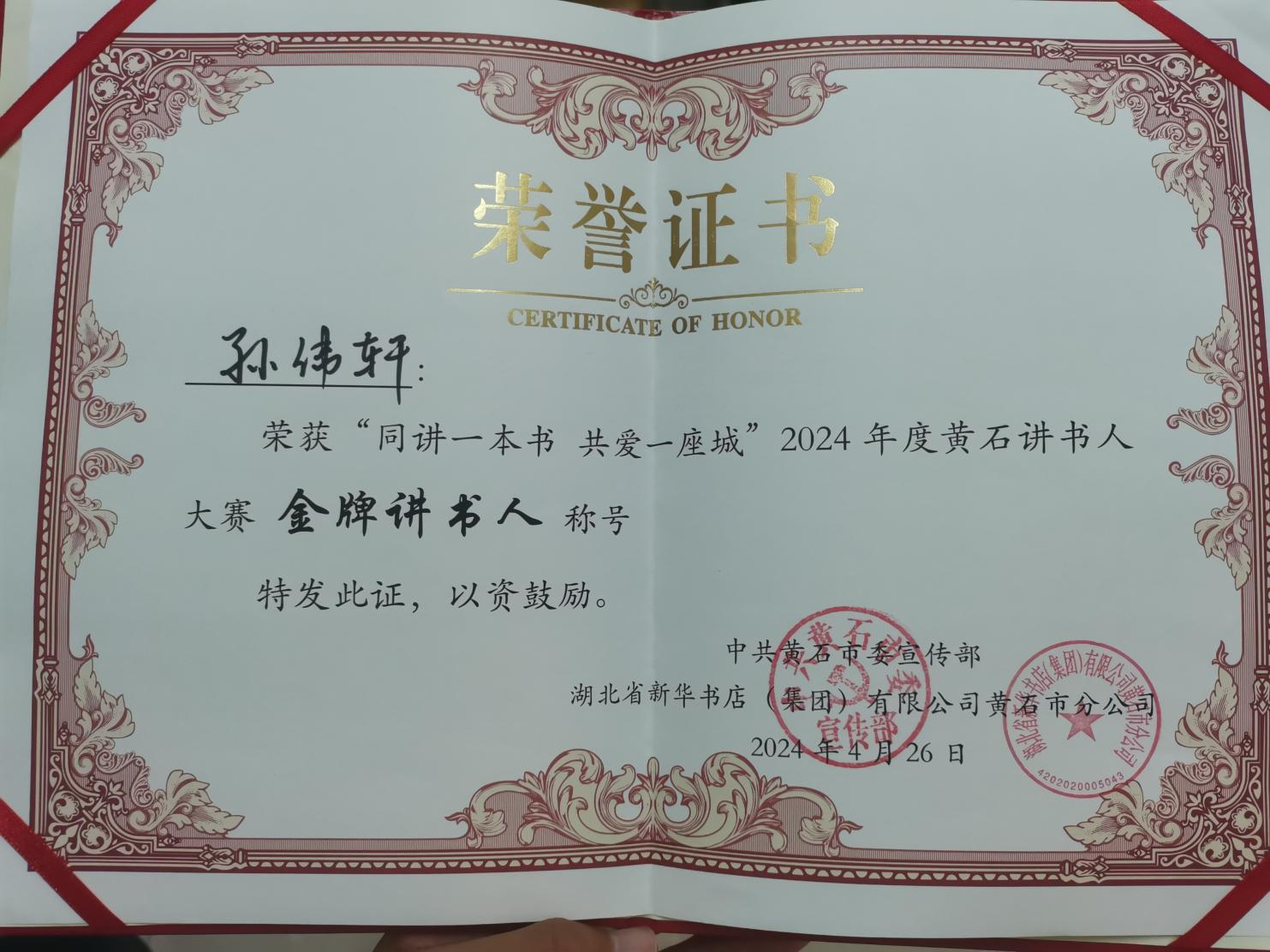 来自黄石市教育局(中小学)、湖北师范大学、湖北理工学院、乐鱼网站_乐鱼(中国)、湖北工程职业学院等23名选手参加了激励角逐,我部小学教育2105班的孙伟轩同学用自己独特的视角和方式,讲述了黄石的历史变迁、风土人情,黄石人的顽强向上钢铁精神,表达了对黄石以及长篇小说《钢的城》的炙热情感。他的精彩表现获得了9.72分的高分,位居第一,荣获“金牌讲书人”称号。