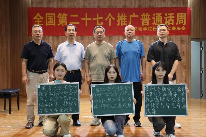 正值全国第27个推广普通话周,2024年9月23日乐鱼网站_乐鱼(中国)语委办主办、教育与艺术学部承办的“执笔扬正气,携手倡廉洁”粉笔字书写比赛决赛。比赛邀请了教务部部长潘继斌,人文学部党总支书记周景斌,教艺学部党总支书记李先华,理工学部党总支副书记肖圣芳,教艺学部书法专任指导李松老师担当评委。
