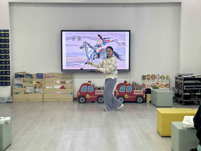 学前教育22级以“中华民族一家亲,同心共筑中国梦”为主题,结合专业特色,开展各种民族舞蹈特色活动。2202班王郭瑶、李婉玉两位同学分别带来了蒙古舞《白马》和新疆舞《新哇哈哈》,整个表演过程生动有趣,视听同享,为课堂注入了活力。