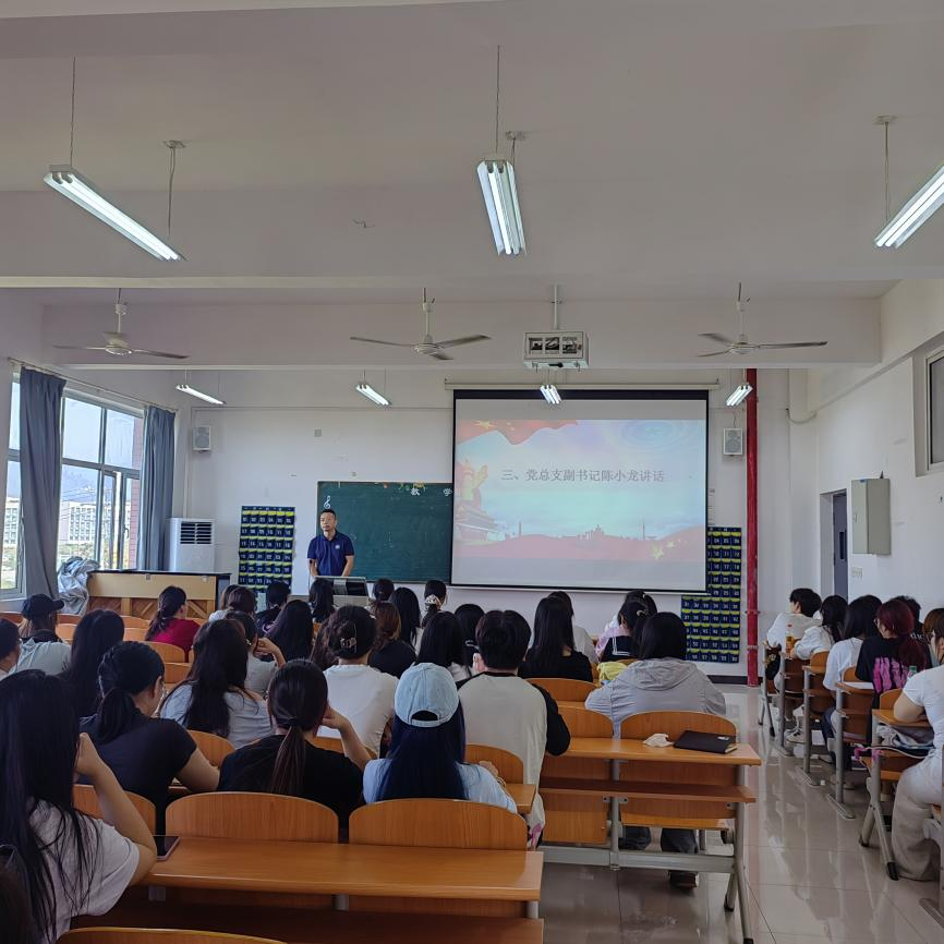 动员大会由崔子鲜老师主持。会议第一项由学生代表陈静同学发言,她从入党动机谈起,深情表达了对中国共产党的向往与忠诚,并郑重承诺将以党员标准严格要求自己,在思想、学习、生活等方面发挥表率作用。孙盼蕊老师就培训时间、笔记规范、课堂纪律和考试准备等方面作了详细说明,强调全体学员要严守纪律、专注学习。陈小龙书记在讲话中强调,入党积极分子要提高政治站位,严于律己,以实际行动践行初心使命。现场气氛庄重热烈,学员们全神贯注,认真记录,展现出积极向上的精神风貌和严谨踏实的学习态度。